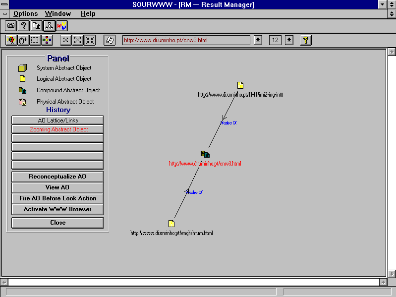 Figure 3 shows the result of the conceptualization of the URL ``http://www.di.uminho.pt/cnw3.html''. This figure displays both the links and the comparison relations among AOs.