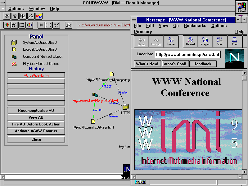 Figure 6 shows the result of activating the NETSCAPE NAVIGATOR for displaying a selected AO. This operation loads the correspondent URL (using the OLE AUTOMATION mechanism) into the current NETSCAPE window.